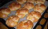 Poté potřeme housky rozšlehaným vejcem a posypeme solí, mákem, sezamem, strouhaným sýrem a podobně podle chuti. Dobré domácí housky pečeme v předem vyhřáté troubě na 180°C asi minut. Upečené housky nechte alespoň trochu vychladnout.